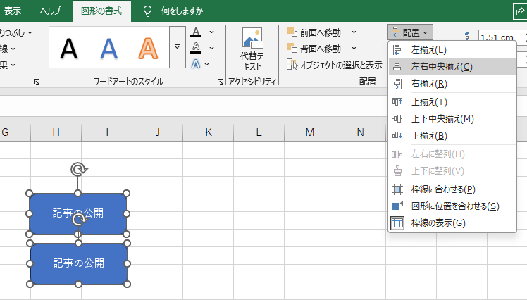 エクセルの図形(オブジェクト)の位置を揃える方法